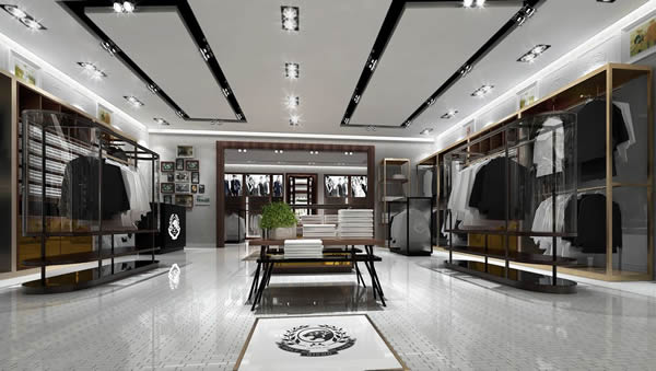 男裝店的裝修風格一般要顯示出男士的審美觀與品位,其色調上一般采用白色、黑色或者金屬相互協調搭配,不需要過多的鮮艷或繁雜,通常以現代簡約為主,在視線感觀上,寬敞、開放式的空間可以更好引發(fā)男士購物的欲望。
