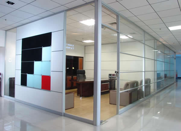 藝術(shù)玻璃隔斷利用玻璃色彩變換,營造出藝術(shù)色彩,選擇這種隔斷需要注重辦公空間的整體風格與藝術(shù)玻璃隔斷色調(diào)的一致性。