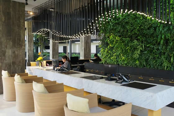 辦公室前臺是企業(yè)形象與接待客戶的重要組成部分,關(guān)系著客戶對自身形象與實力的印象,所以決不能忽視。當前較多的中小型企業(yè),因為辦公室面積有限,所以前臺區(qū)域的空間并不開闊,那么該如何綠化裝飾呢?可以進行分層搭配綠色植物,還可以以積木堆疊方式擺設(shè)各種盤景,或者利用植被墻進行綠化,這樣不僅可以增加綠色色彩,還可以改善強烈光線的影響,使前臺區(qū)域更有立體感與層次感。