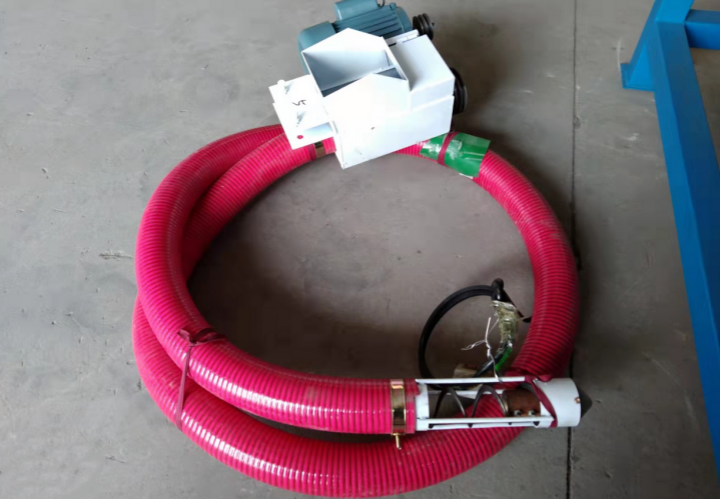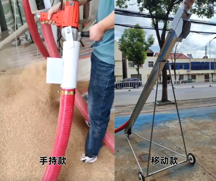 手持式絞龍吸糧機:專為小農戶、小型作坊及家庭農場設計,具有體積小巧、重量輕便的特點,單人即可輕松握持操作,無需額外輔助人力。其吸料軟管柔韌性強,可靈活彎曲深入糧堆、儲料桶等狹小空間,完成小批量糧食的吸取與輸送。