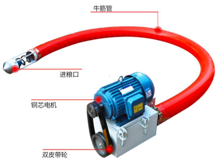絞龍吸糧機的結構圍繞 吸送順暢、防堵耐磨 設計,核心由五大部件組成,各部件協同保障輸送穩定。