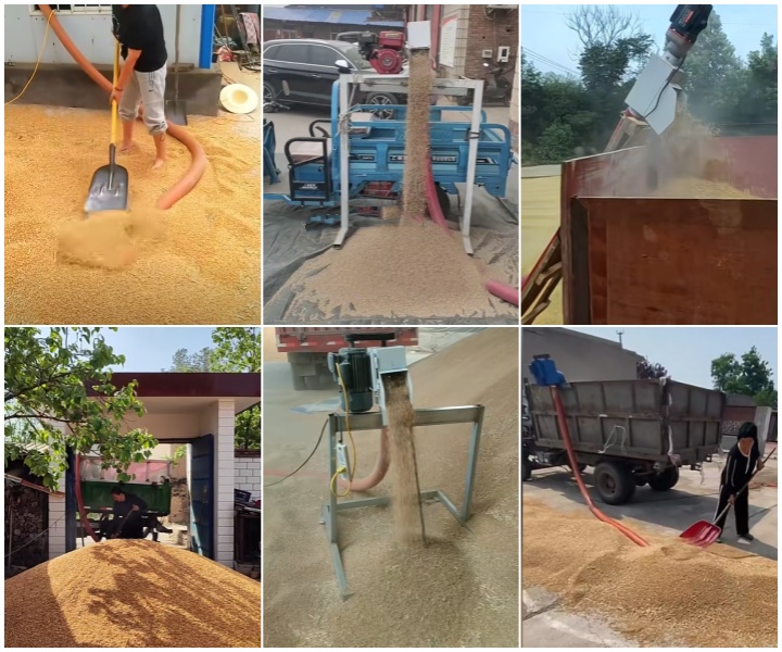 田間收糧:中小型移動款適配農戶或合作社,可將晾曬后的糧食從糧場直接吸入糧囤,或裝入運輸車輛,避免人工扛運的勞累與損耗。