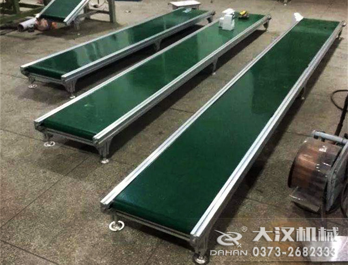 水平皮帶輸送機由單機或多機組合成運輸系統來輸送物料,根據工藝要求可布置成水平或傾斜的形式,DTⅡ型皮帶輸送機除了可滿足水平或傾斜輸送要求外,還可采用帶凸弧段、凹弧段與直線段組合的輸送形式.輸送機允許輸送的物料塊度取決于帶寬、帶速、槽角和傾角,也取決于大塊物料出現的頻率.該輸送機適用的工作環境溫度一般為-25~+40℃.我公司還生產輕型皮帶輸送機和移動式輸送機。