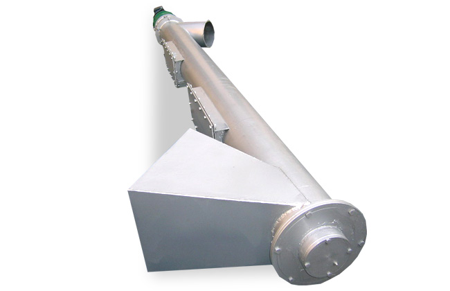 管式無軸螺旋輸送機是指外觀為圓管,葉片為沒有中心軸的螺旋輸送機,它的管徑有:150mm、200mm、250mm、300mm、400mm、500mm等,材質可以分為:碳鋼(Q235)、錳鋼(Mn17)不銹鋼(304)。
