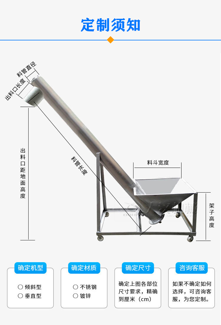 移動(dòng)螺旋輸送機(jī)可根據(jù)要求選擇不同的傾角、不同尺寸的進(jìn)料斗等,實(shí)際價(jià)格需要結(jié)合選擇情況去核算。