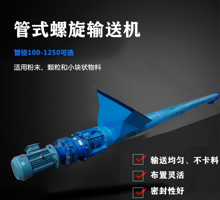 管式螺旋輸送機是較為常見的一種輸送機,整個運輸過程是在封閉的圓管內進行,輸送均勻、不易卡料,且不會產生粉塵。