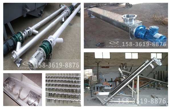 不銹鋼螺旋輸送機(jī)的幾種工作方法: 重力滑下法。螺旋輸送機(jī)螺旋的轉(zhuǎn)速較低,在螺旋面上的物料受到重力的影響遠(yuǎn)比離心力的影響大,由于螺旋的轉(zhuǎn)動(dòng)物料不斷沿螺旋面向下滑,于是產(chǎn)生軸向的位移,cx螺旋機(jī)基本上屬于此種原理。此種原理的螺旋機(jī)的填充系數(shù)值一般都小于05。因?yàn)槌涮钸^多,物料不是沿螺旋面滑下,而是被螺旋的攪動(dòng)使它翻越螺旋軸落下,并不能獲得大的軸向速度。既然慢速螺旋的物料受重力的影響較大,顯然它不能用于垂直螺旋或傾斜角較大的向上輸送情況。 滑下法原理,雖然廿值小,輸送能力低,但物料處于輕松散的自由滾落的狀態(tài),較少受到擠壓,適用于易結(jié)塊、磨琢性大的物料。當(dāng)采用標(biāo)準(zhǔn)螺旋時(shí),不但能保持較快的滑下速度,并且對(duì)傾斜輸送有一定的適應(yīng)能力(傾角一般在20°以內(nèi))。 推擠法。此法用于倉底的卸料輸送螺旋,物料經(jīng)常充滿螺旋,顆粒物料受到的靜壓較大,每粒物料本身的重力遠(yuǎn)小于其他作用力(螺旋推力、摩擦力、靜壓力)。此種螺旋的阻力是很大的,它要克服較大壓力下形成的摩擦力。工作時(shí)物料好象是螺母,螺旋起螺釘似的作用,只要螺母不轉(zhuǎn)動(dòng)(或轉(zhuǎn)動(dòng)較慢),利用螺釘?shù)男D(zhuǎn),就可以使螺母沿軸向移動(dòng),倉底卸料螺旋常采用變節(jié)距螺旋,在出口端的節(jié)距較大。 離心誘導(dǎo)法。用于垂直的傾斜度較陡的螺旋輸送機(jī),或轉(zhuǎn)速較高的螺旋輸送機(jī),其工作特點(diǎn)是物料充填量介于兩種之間,在螺旋的高轉(zhuǎn)速下,松散的物料受到離心力的作用遠(yuǎn)比重力等其他外力的影響大。