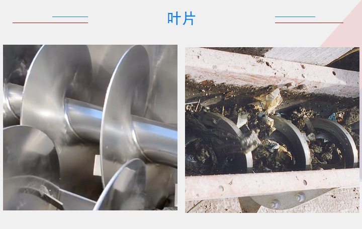 不同性質的物料對螺旋輸送機的葉片形狀、材質有不同的要求。針對一般物料,可選擇碳鋼材質的有軸葉片,對于一些粘性大,纏繞性物流,就需要選擇無軸螺旋葉片,對衛生環境有要求的物料,葉片一般建議選擇不銹鋼材質,磨琢性強的物料則要選擇錳鋼材質的葉片。