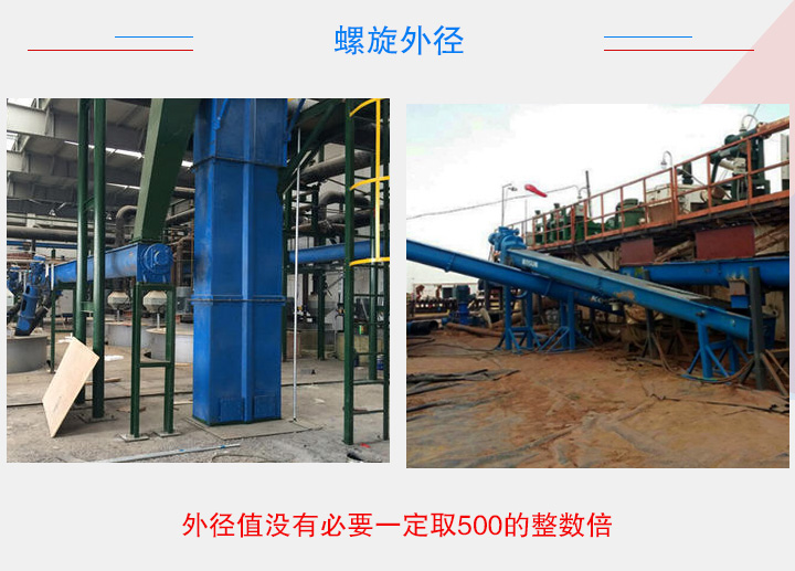 在相關參數穩定的情況下,物料在料槽內軸向移動速度和圓周速度隨物料所在螺旋半徑的增大而增大。在選取螺旋輸送機的時候根據物料特質選擇葉片和旋轉軸,直徑越大,效果越好,但是對于開式螺旋輸送機,如果螺旋外徑過大,就會增加其制造成本,且不利于冷卻。此外,外徑值沒有必要一定取500的整數倍。