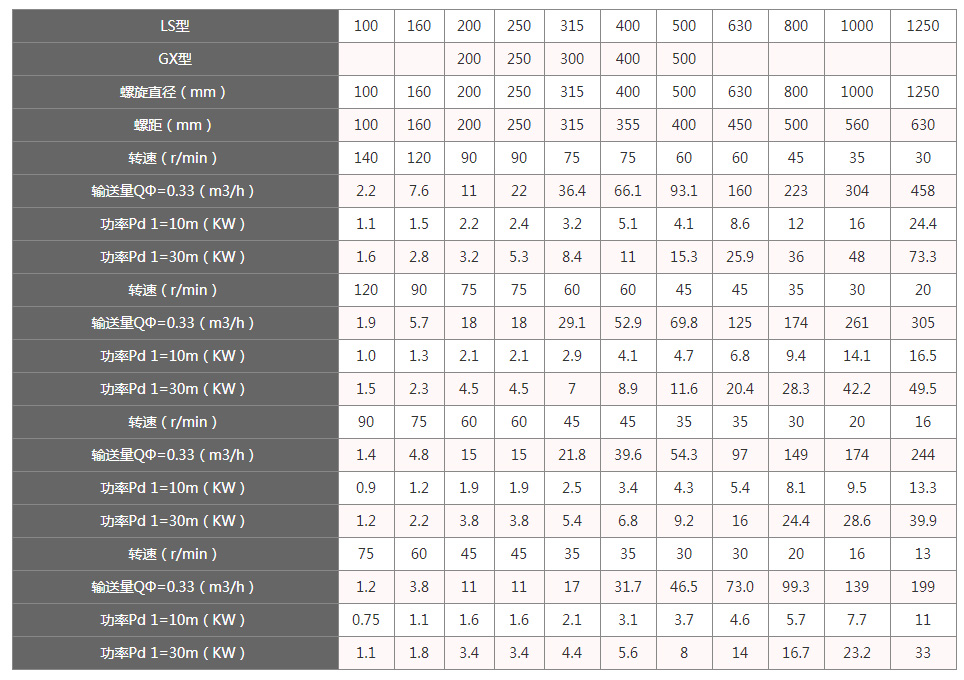 附 螺旋給料機(jī)參數(shù)表: