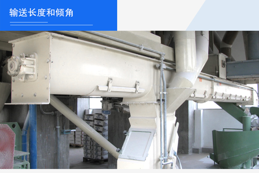 輸送長(zhǎng)度和傾角大小直接影響輸送機(jī)的總阻力和所需要的功率,輸送長(zhǎng)度越長(zhǎng),傾角越大的話,螺旋給料機(jī)所需的功率就越大,所以在選型時(shí)需要說(shuō)明這一點(diǎn)。
